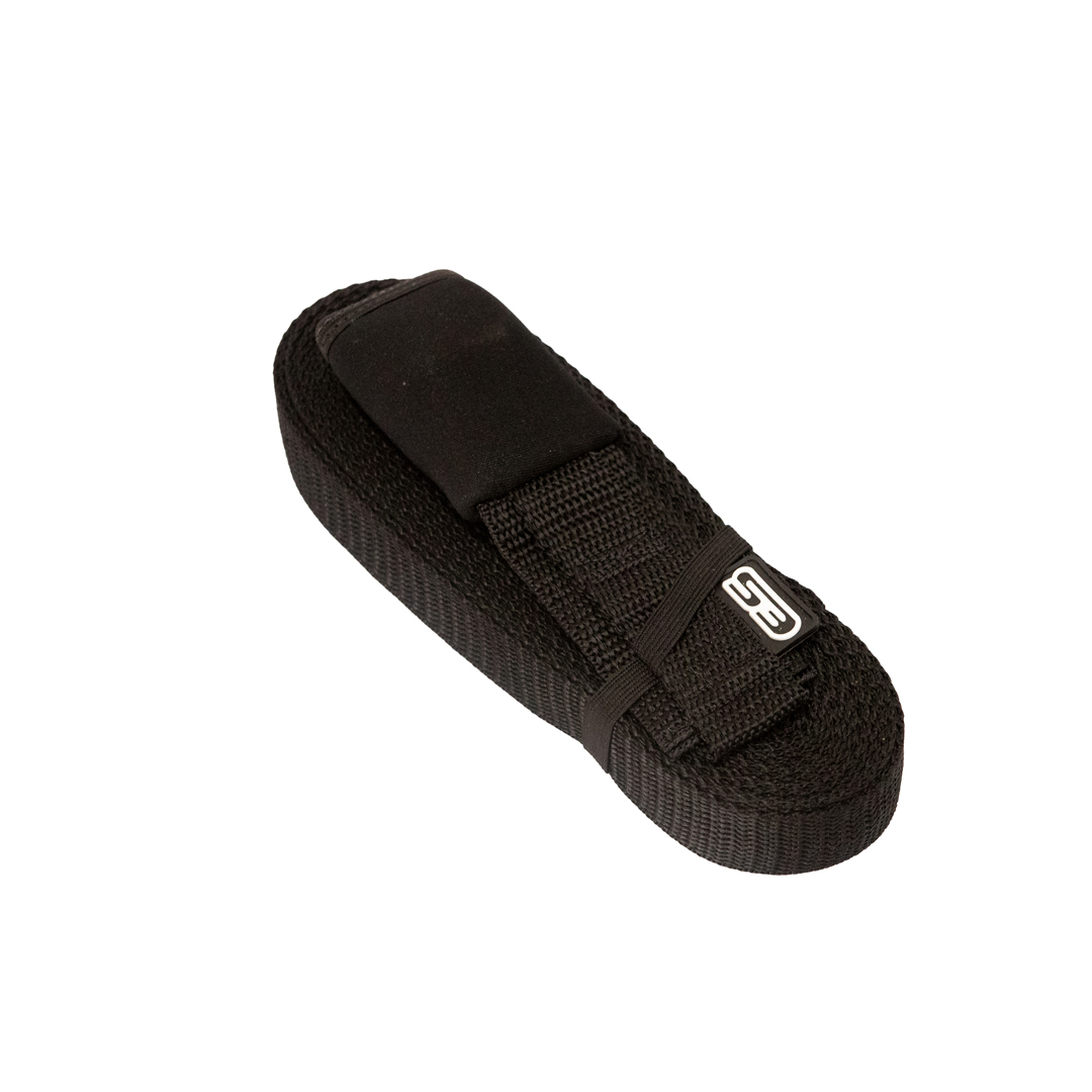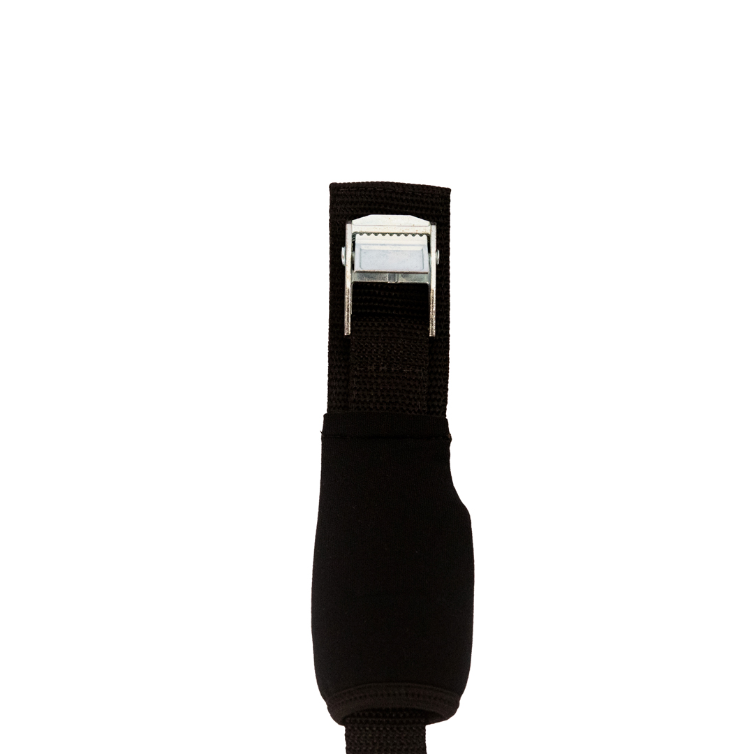 Composto por uma fita de polipropileno/nylon com 8 metros, trava de zinco super resistente e anti-ferrugem, base de proteção e capa em neoprene evitando que o fecho metálico entre em contato com a superfície do carro. Costuras super reforçadas em travete, e possui elástico para manter a fita enrolada enquanto não é usada.